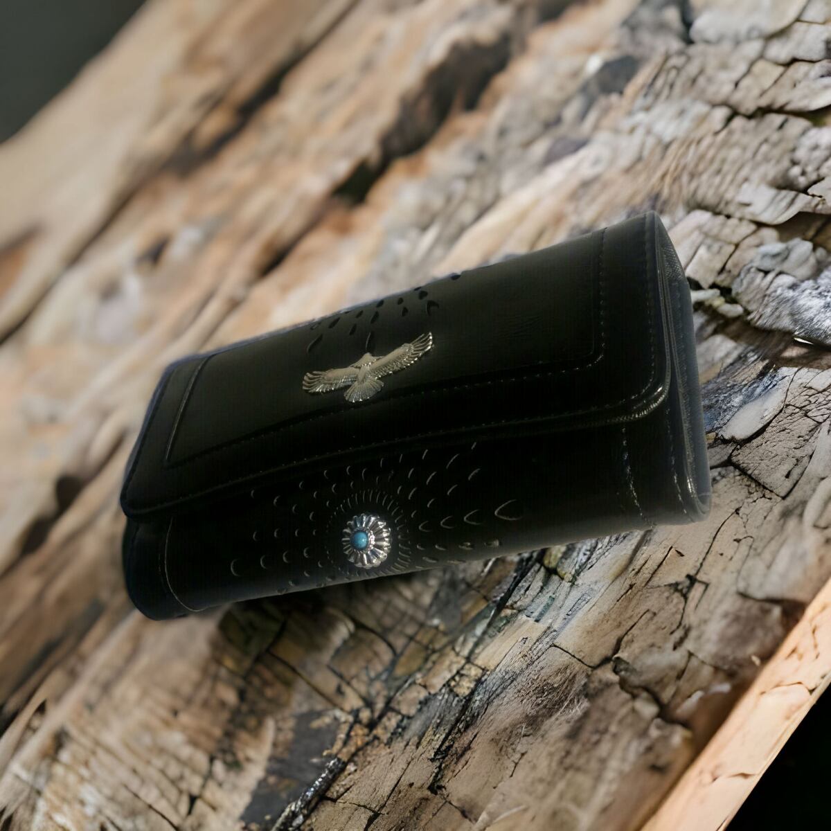 新品☆送料込み☆ハンドメイドDIYシルバーイーグル クラフトレザー長財布ブラック