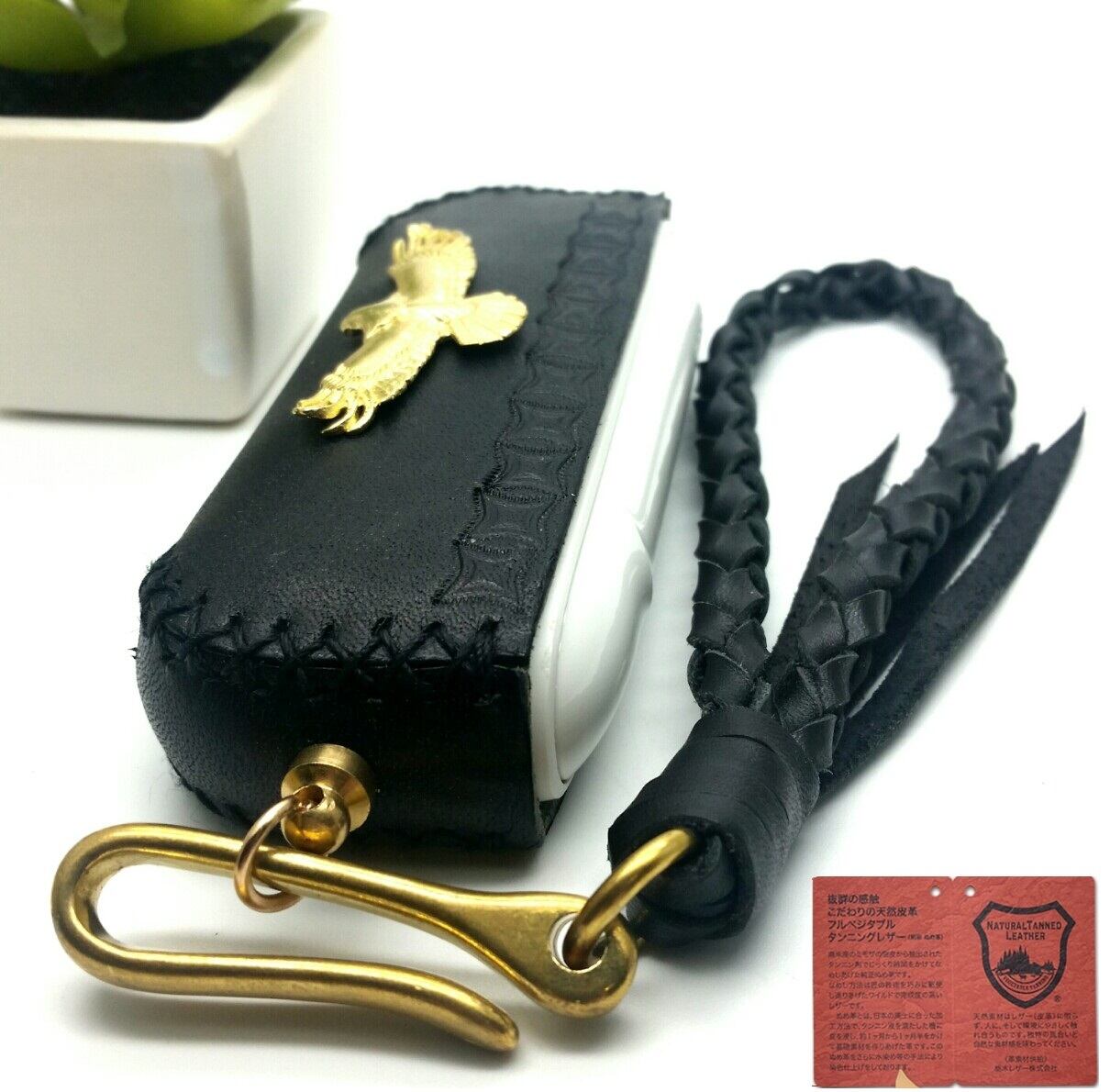 新型 ILUMAイルマ対応 イニシャル刻印無料 ハンドメイド栃木レザー IQOS3ケース アイコス3レザーケース 黒ブラック イーグル
