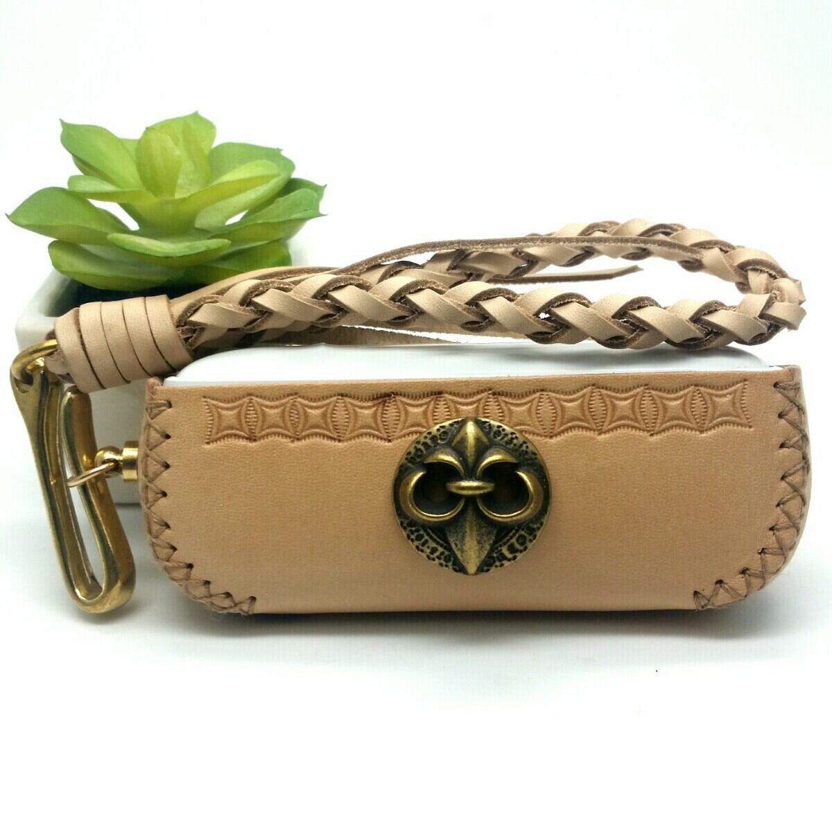 栃木レザーのナチュラルカラーとアンティークリリーデザインコンチョにジオメトリーな神秘的刻印は大人の男女に好まれるエッジが効いてるのに品格のあるデザインです!