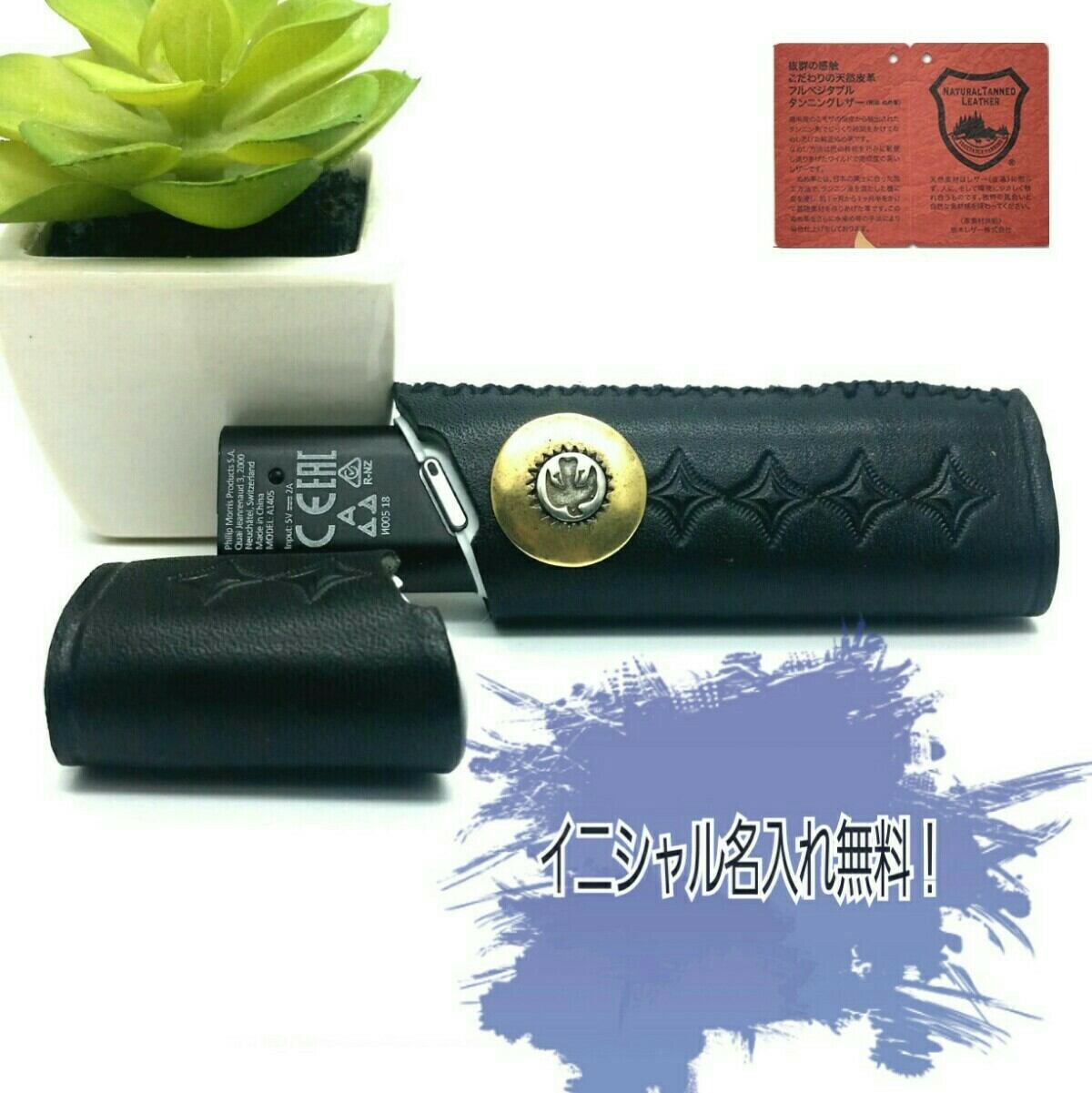 イニシャル名入れ無料世界で1つハンドメイド栃木レザーiqos3マルチケース黒