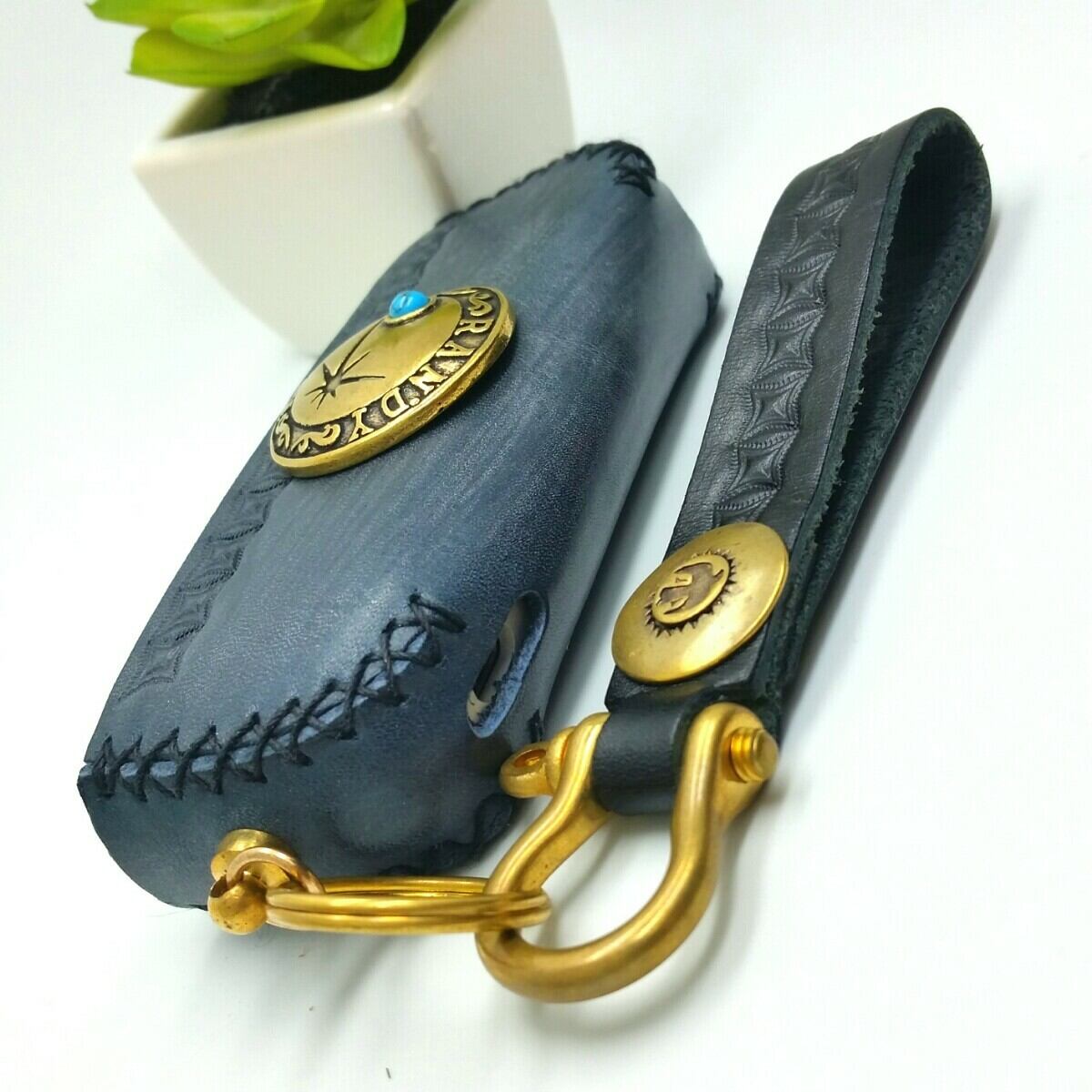 ネイビー(敢えてまだらにかすれた風合いのある色味はブライドルレザーの真骨頂です!)
