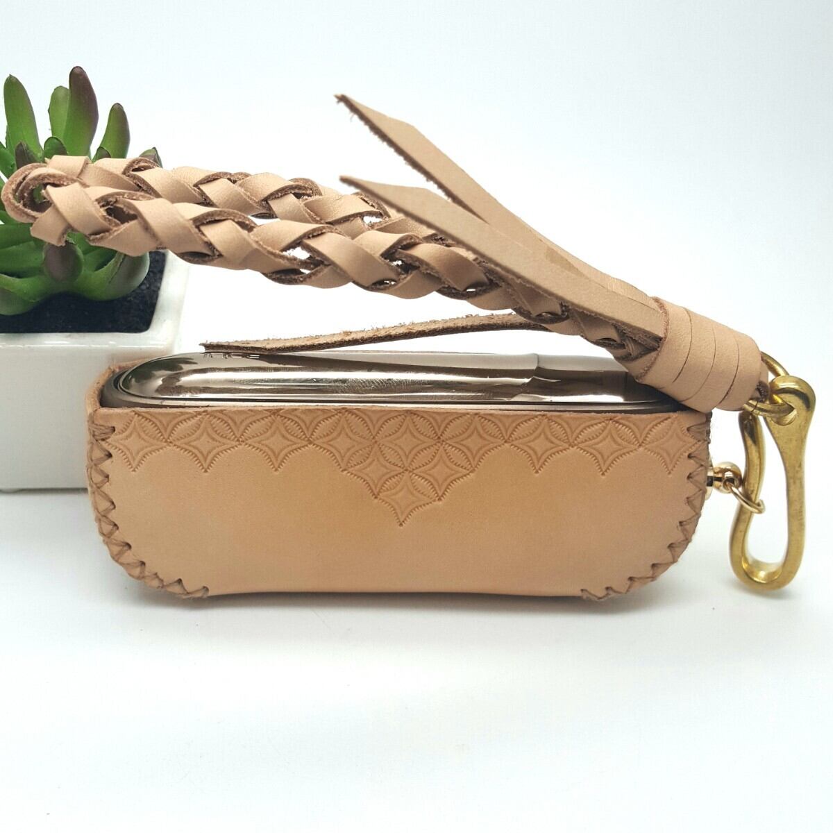 高品質の栃木レザーを使用したハンドメイドの【アイコスの専用ケース】と【本ヌメ革ストラップ】のセット☆