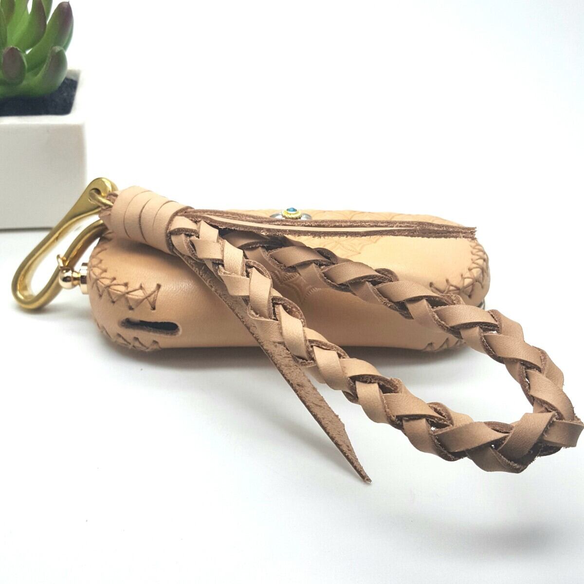 厚みのあるレザーは作成が困難ですが丁寧にじっくり縫い付けて時間をかけ作成しました。