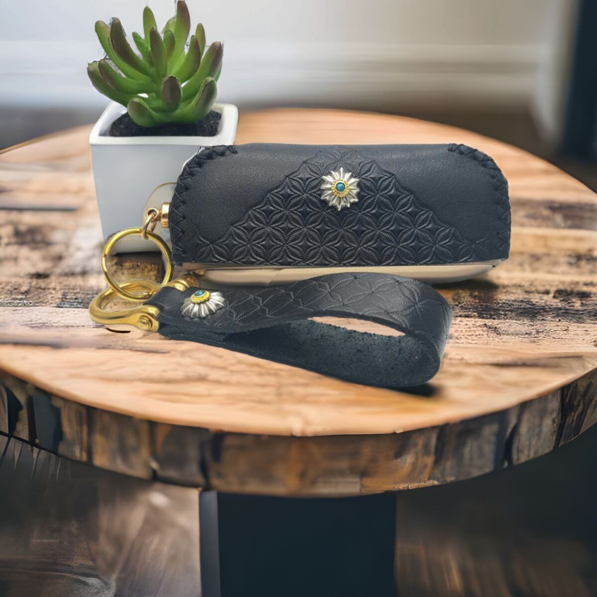 新型 ILUMAイルマ対応 イニシャル刻印無料 ハンドメイド栃木レザー IQOS3ケース アイコス3レザーケース 黒ブラック ジオメトリー