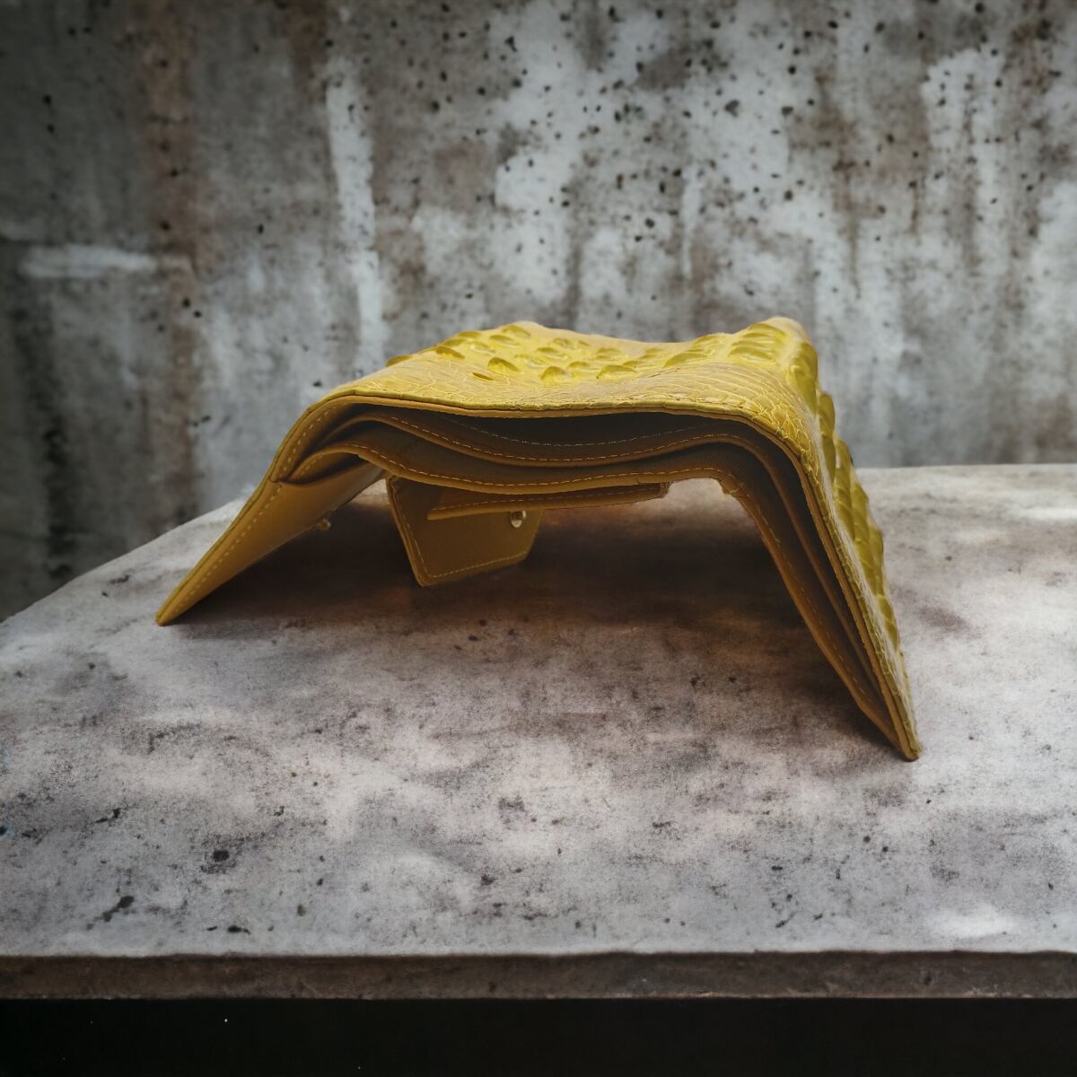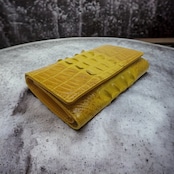 【本物証明証付き】 AT13 本革 クロコダイル 三つ折り財布 ウォレット イエロー