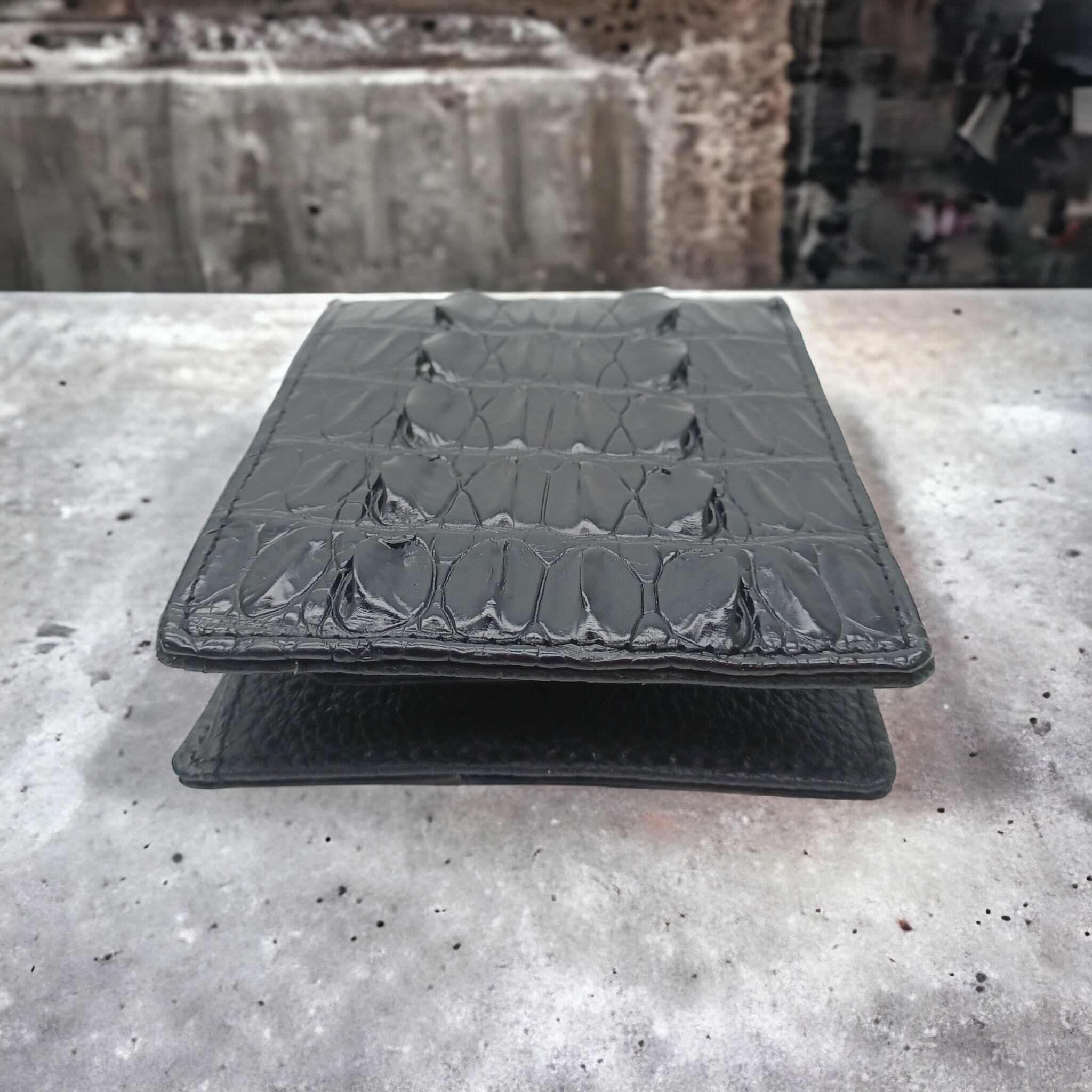 【本物証明証付き】 AT13 本革 クロコダイル 二つ折り財布 ウォレット 背ブラック